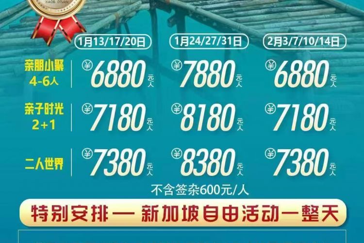 一地价格两地同游,体验南洋风情,2-6人小包团,全程纯玩0购物 品质有保障!