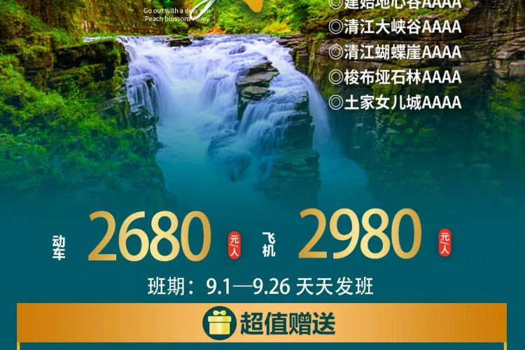 (温馨提示:女儿城表演以景区实际安排为准,若遇下雨等情况无法表演,敬请谅解,无法退任何费用;自由活动时间,请保管好随身携带物品、尊重当地民俗面貌注意人自身安全;景区内土家特色物品自愿收藏,不属旅行社购物,请谨慎消费)