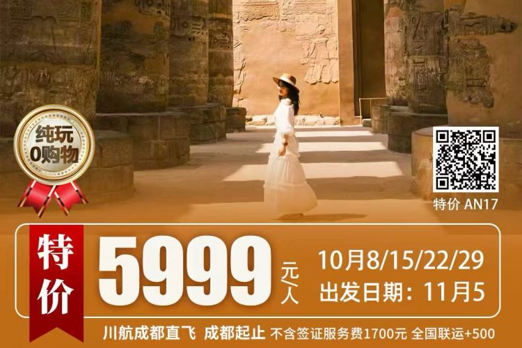 参考航班:去程 成都天府TFU - 开罗CAI 3U3863 01:30 - 06:50 回程 开罗CAI - 成都天府TFU 3U3864 14:45 - 05:10(+1) |