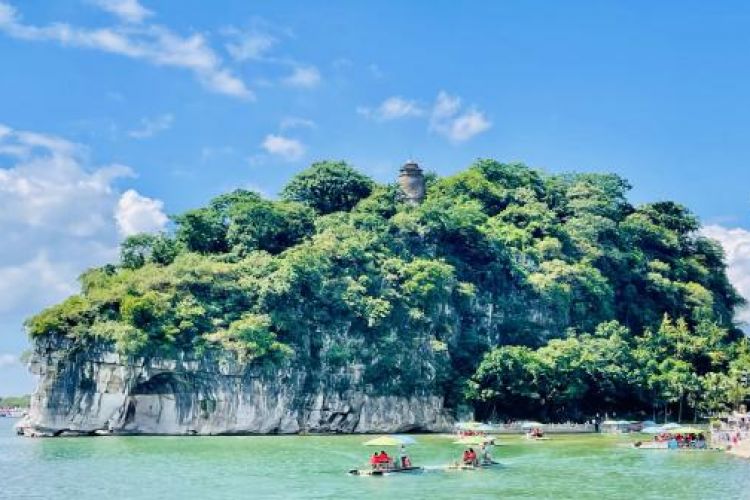 ▲游览【伏波山景区】(约60分钟)伏波山位于广西桂林漓江之滨,是一座依水傍水的孤峰,汉代时伏波将军马援南征曾经过此地,故得名。唐代时山上曾建有伏波将军庭。现有癸水亭、听涛阁、半山亭、还珠洞、米芾自画像、试剑石、珊瑚岩、千佛岩等名胜,还有一口重1000余公斤的“千人锅”和重2700多公斤的大钟,乃清定南王孔有德女儿为悼其父所铸。