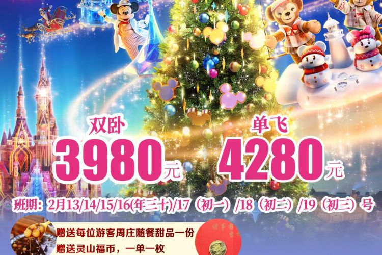 经典+上海迪士尼四钻去飞回卧7日游 纯玩0购物