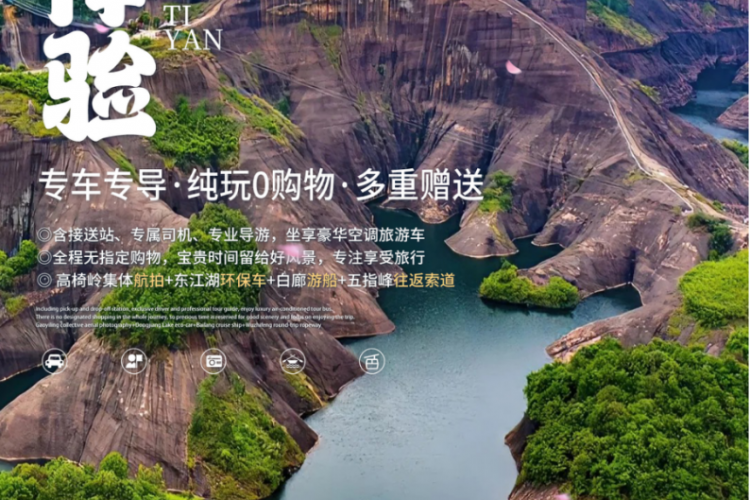 乘车前往国家AAAAA级景区——【东江湖核心景区】(游览时间约2.5小时,东江湖A线),游览有着“湘南洞庭”“东方瑞士”之美称,沿途欣赏小东江风情过“人间仙境”的【雾漫小东江】(清晨和傍晚出现)、车观瀑布,旁边密林丛生水流顺着小山谷流下,击打着生长在其中的小树,小花,小草——【猴古山瀑布】;车观我国自行设计、自行建造的第一座双曲薄壳拱坝——【东江大坝外景】,随后游览“天然大氧吧、清凉避暑胜地”——【龙景峡谷】,龙景峡谷内流泉飞瀑密布,老树古藤攀岩附壁,沿途我们可以观赏到龙景瀑、龙吟瀑、三叠瀑、龙卷瀑、鸳鸯瀑等形态各异的瀑布和古松坳、连理树、龙鳞石等千姿百态的景点。景区内空气负离子达每立方厘米9万个以上,是全国已知负离子最密集的地方,被人誉为“天然氧吧”。温馨提示:雾是自然现象,如因天气原因未能看到雾漫小东江,我社不做任何赔