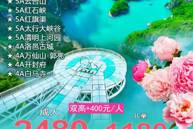 (如果遇到 7.8 月黄河三峡排水期、政策性或者天气问题,黄河三峡景区则自动更换为:峡谷风情、中华第一峡谷、人间仙境、”抬头张家界、低头九寨沟“-青龙峡或者峰林峡景区【自项目和黄河三峡同价】,