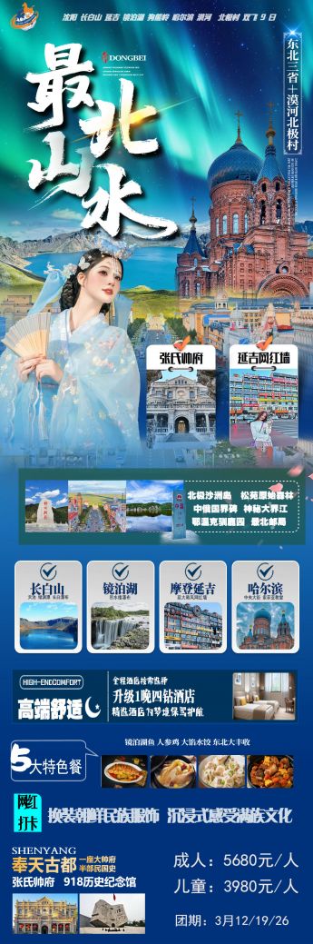 东北 2026最北山水双飞9日游(3月)